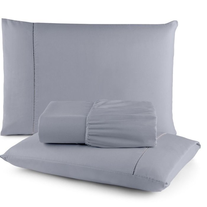 Jogo Lençol com Elástico Casal 3 peças Ponto Palito Micropercal 400 Fios:Cinza