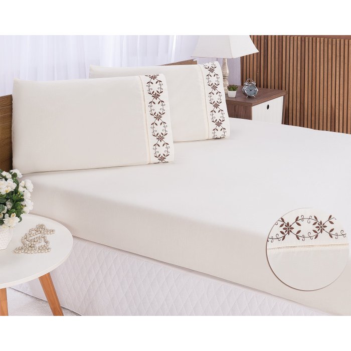 Jogo lençol king casal bordado 3peças Palha chocolate veneza