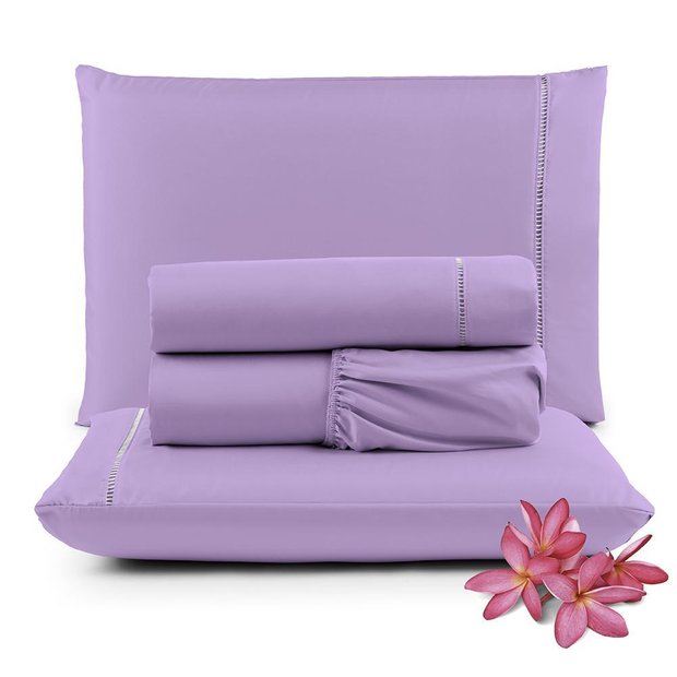 Jogo Lençol Micropercal 400 Fios Queen 4 Peças Barato Lilás