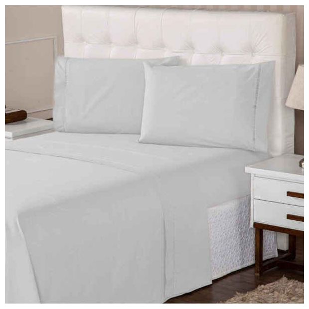 Jogo Lençol Queen 400 Fios Percal 4 Peças Ponto Palito 100% Algodão Aconchego Branco Casa Dona Branco
