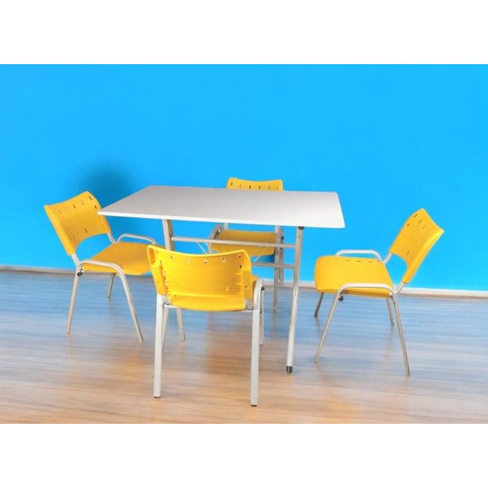 Jogo Mesa 120x70 para Restaurante Comércio com 4 Cadeiras Iso Amarela Base Branca Ecomhome
