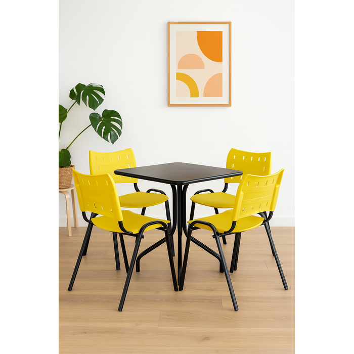 Jogo Mesa 70x70 Preta para Sorveterias e Restaurantes com 4 Cadeiras Iso Amarela