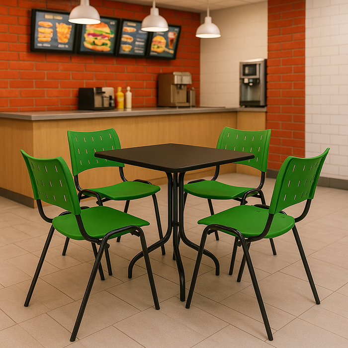 Jogo Mesa 70x70 Preta para Sorveterias e Restaurantes com 4 Cadeiras Iso Verde