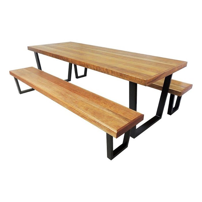 Jogo Mesa e 2 Bancos Industrial Diamond 2,50m Ferragem Preta