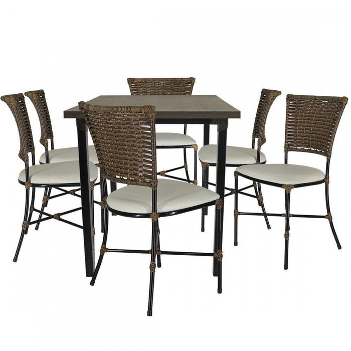 Jogo Mesa E 6 Cadeiras Gramado Fibra Sintética Junco Para área Interna E Externa, Cozinha Acesse Móveis Argila Com Branco Gelo