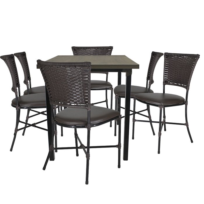 Conjunto Cadeiras de Jantar Gramado - PANERONossos produtos são de altíssima qualidade, leve, acabamento e design moderno, garantindo assim conforto e praticidade para seu bem-estar.Itens inclusos: - 6 Cadeiras .- 1 Mesa De jantar com Tampo.Especificações.- Estrutura: Aço Carbono, resistente;- Acabamento: Fibra sintética com UV Protection (vime/junco);- Solda: Solda Mig, de alta resistência;- Pintura: Pintura eletrostática epóxi de alta qualidade;- Assento: Com Madeira, espuma D28, revestido com tecido;- Tampo MDF.FABRICANTE: PANEROAmbientes: Sala de Estar, Sala de Jantar, Área Gourmet, Varanda, Cozinha, edícula, área, sacada, área de Piscina, área de lazer, Festa, Reunião, área de Churrasco, entre outros.Fibra Sintética especial com UV PROTECT que proporciona maior durabilidade e Resistência ao Sol, são produzidas com materiais de altíssima qualidade.GARANTIA: 90 dias.Design Moderno proporciona a ambientação e decoração para diversos ambientes e para todos os gostos!Fácil de Limpar – Utilize Sabão Neutro para a limpeza das fibras e estruturas.TGA Você também pode buscar por - Conjunto de cadeiras, Cadeiras de Jantar, Jogo de Jantar, kit de Jantar, combo de Jantar, Cadeiras de Jantares, jogo de cadeiras, cadeiras e mesa, cadeira de área, cadeira de descanso, cadeira confortável, Cadeira e mesa, Cadeira de vime, cadeira de fibra, cadeira artesanal, cadeira de junco, Jogo de mesa, conjunto de mesa, área gourmet, cadeira artesanais, móveis artesanais, móveis artesanais, kit de cadeiras, kit 4 cadeiras, combo de cadeiras.