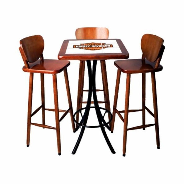 Jogo Mesa quadrada alto 60 x 60 cm para cozinha Imbuia Harley 3 Lugares -
