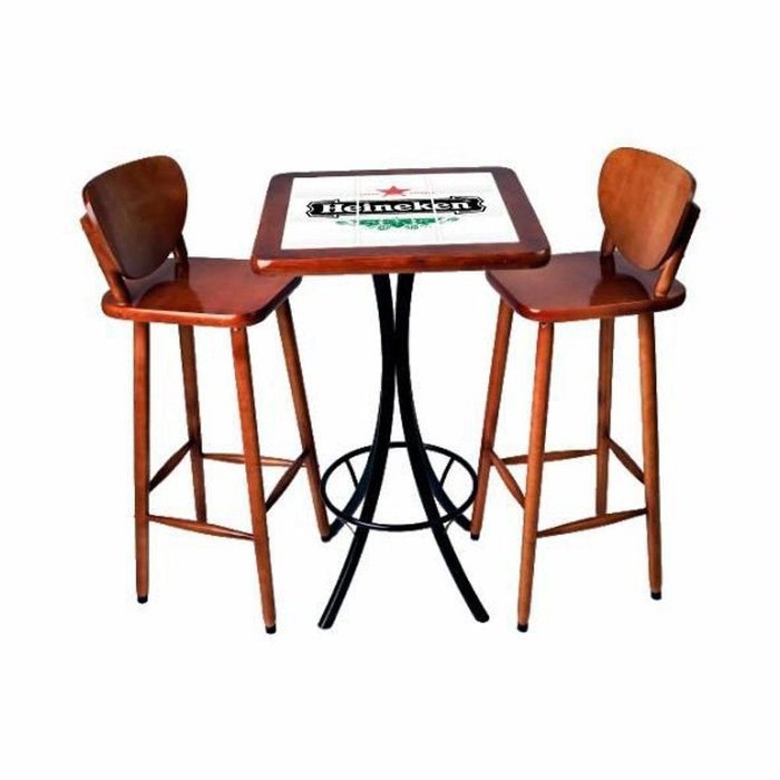 Jogo Mesa Quadrada Bistrô Azulejo Heineken 2 Banqueta-imbuia