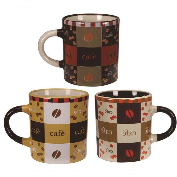 As Canecas da linha Pilão em cerâmica da Yazi são decoradas com 3 estampas diferentes!Caneca pintada por dentro e estampada por fora, feita em cerâmica de alta qualidade, possui capacidade para 110ml.Ideal para café, leite ou chocolate quente!Dimensões da caneca: 6,9cm A x 6cm D x 9cm CPeso unitário (Kg): 0,261Composição: Cerâmica Cor da Estampa: Amarela, creme ou marrom Conteúdo:-01 unidade Caneca Cerâmica Pilão Marrom 110ml;-01 unidade Caneca Cerâmica Pilão Creme 110ml;-01 unidade Caneca Cerâmica Pilão Amarela 110ml;Total: 3 Peças