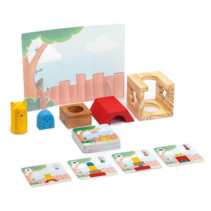 O Gato e o Passarinho é um jogo de raciocínio espacial, para descobrir a posição das peças a partir da vista frontal representada nas cartas. Um desafio estimulante para toda a família!