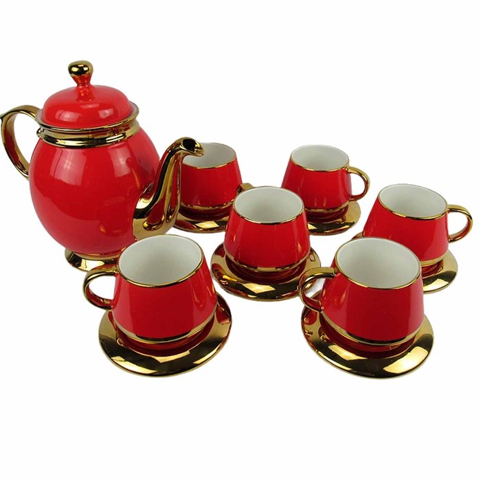 Jogo para chá Vermelho com Dourado Prime Home Decor 36628
