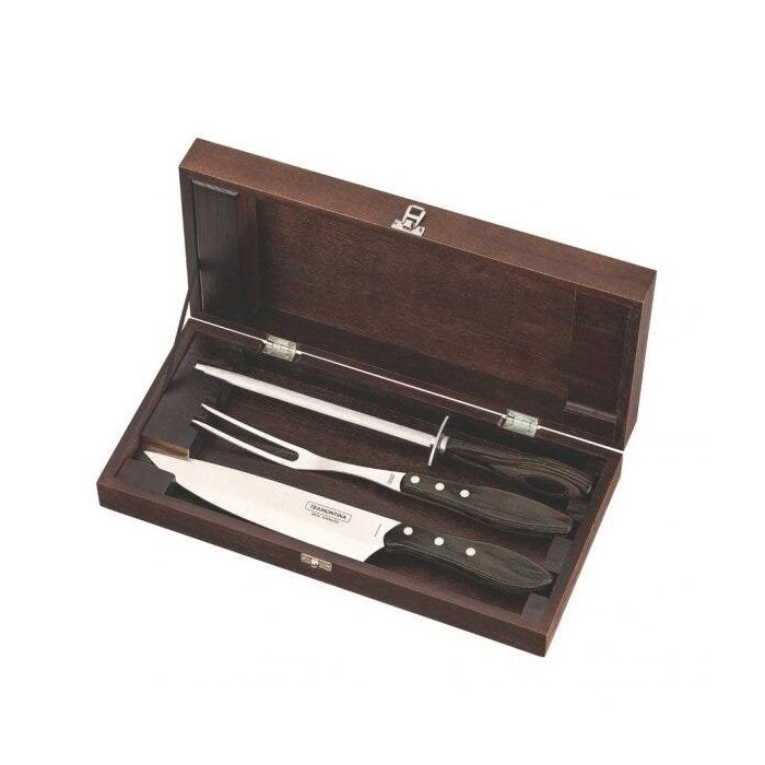 Jogo para Churrasco Inox com Estojo de Madeira 4 Peças Polywood Tramontina Tabaco