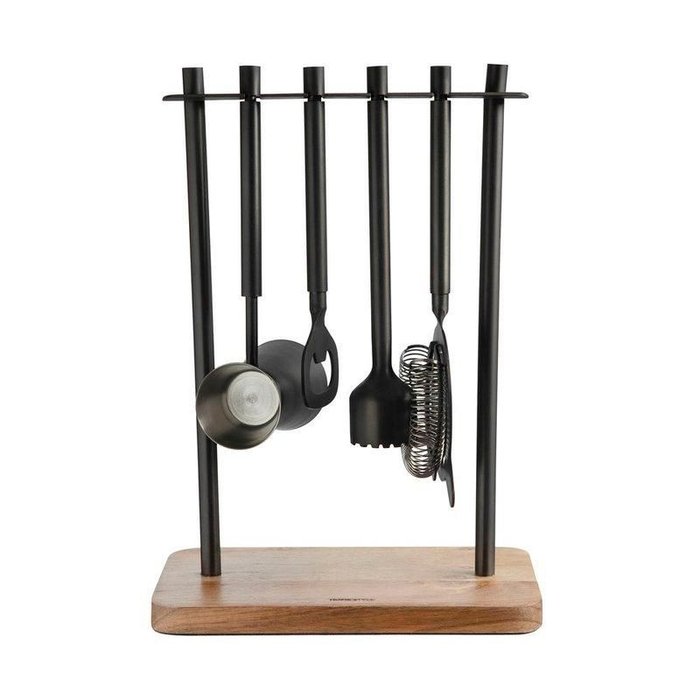 O Jogo para Drinks Blend tem 5 peças e é produzido em aço inox e madeira que auxiliam na preparação dos seus drinks favoritos.