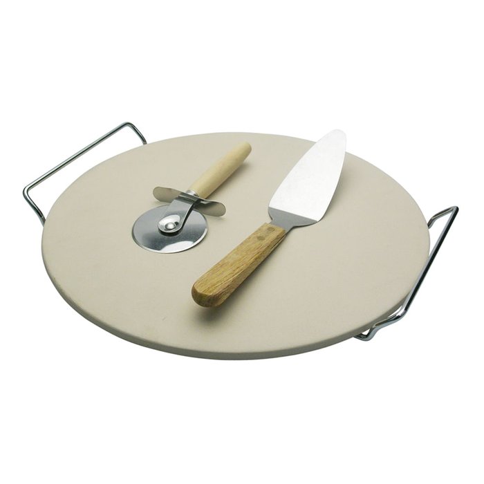 Ideal para assar sua pizza com praticidade e servir com muita elegância e eficiência. Leve a pedra (sem o suporte) para o forno ainda morno, até que asse a pizza, depois coloque-o sobre o suporte e leve a mesa. A pedra quente mantém a pizza quentinha durante a refeição.