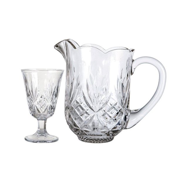 - Conjunto completo: 1 jarra + 6 taças em cristal lapidado
