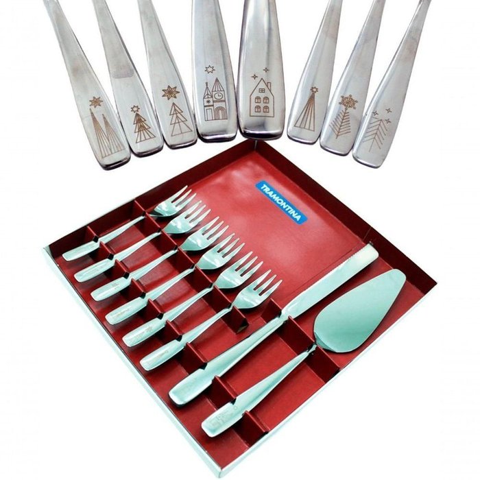 Jogo Para Torta Talheres Natalino Tramontina Inox Natal 8Pçs - Utensílio de cozinha em inox