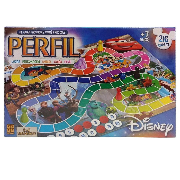 Um divertido jogo que testa seus conhecimentos e sua capacidade de dedução. Cada carta traz dicas sobre atletas, anos, coisas ou lugares. Os jogadores vão recebendo uma dica após a outra, até o momento em que alguém dá o palpite correto sobre o perfil secreto da carta. Quanto menos dicas o jogador precisar, mais pontos ele vai ganhar. Jogo - Perfil - Disney da Grow, traz 216 cartas para você testar seus conhecimentos e se divertir muito.