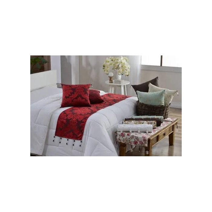 Jogo Peseira /xale Cama Jacquard Pedrarias Solteiro Almofada - Vermelho