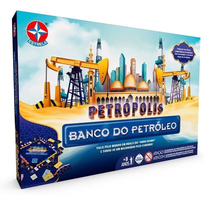 Você já jogou Banco Imobiliário? Se sim, você vai amar se divertir com essa nova versão. E se ainda não jogou, vai amar essa incrível aventura e competição! Nessa nova versão do Banco Imobiliário, os jogadores poderão adquirir concessões em países petrolíferos, explorá-las e desenvolvê-las, montando suas próprias torres e plataformas de petróleo. Quem conseguir o maior capital petrolífero no final do jogo será o vencedor!