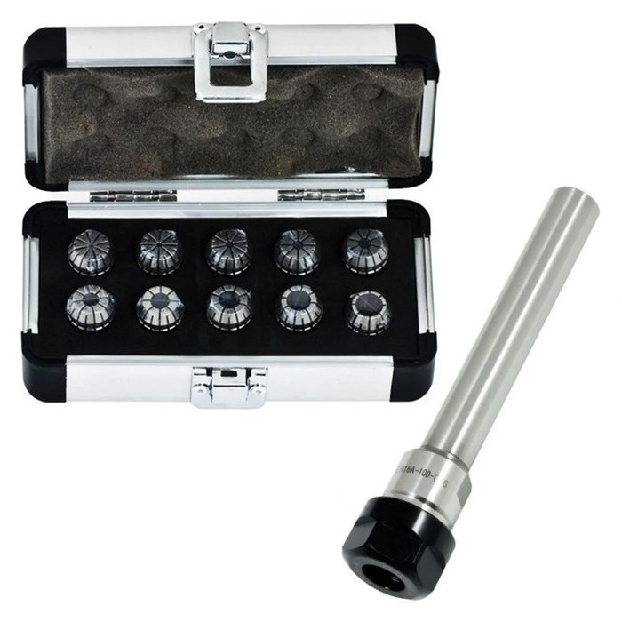 (01) Porta pinças er16 haste paralela 25x100 mm + chave.