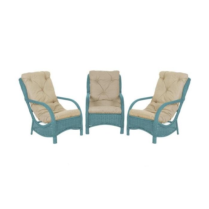 Jogo Poltronas Jardim Varanda Área Descanso Alumínio Vime 3Un Confort Azul Turquesa Estonado A11