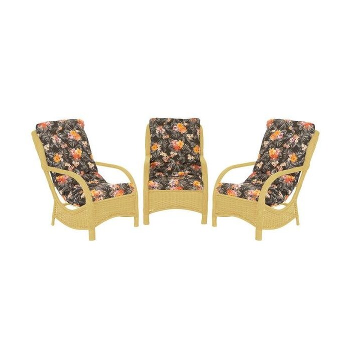 Decore a sua casa com os mais belos e confortáveis móveis, que dão requinte e elegância ao ambiente, são convidativos, lindos e práticos. Além de ecologicamente corretos, são produtos de qualidade, muito resistentes ao tempo. Produzida em estrutura de alumínio polido não enferruja, durabilidade cerca de 5 a 6 anos, Utilizando de maneira adequada tempo superior. material pode ser molhado e utilizado em áreas abertas. <br> <br> <br> <br> ITENS INCLUSOS<br> <br> <br> <br> - 3 Poltronas<br> <br> - 3 Almofadas Para Poltrona<br> <br> <br> <br> ESPECIFICAÇÃO DO PRODUTO<br> <br> <br> <br> MATERIAL DO ACABAMENTO: Fibra sintética com proteção UV.<br> <br> MATERIAL DA ESTRUTURA: Aluminium.<br> <br> SOLDA: Soldado MIG, de alta resistência.<br> <br> <br> <br> Ideal para ambientes externos, varandas, edículas, piscinas , área de lazer, salas de estar, sala de jogos, churrasqueiras, sala de filme, recepção, sala de espera entre outros.<br> <br> <br> <br> FABRICANTE: Click Móveis Artesanais<br> <br> GARANTIA: 12 meses Para Defeitos de Fabrica<br> <br> <br> <br> OBS:<br> <br> Fotos meramente ilustrativas. Tonalidades podem variar dependendo do monitor. Os objetos que ambientam as Fotos não acompanham o produto.<br> <br> Antes de comprar o seu produto verifique as medidas, o local onde pretende instalar e se necessário contratar o serviço de um profissional qualificado.