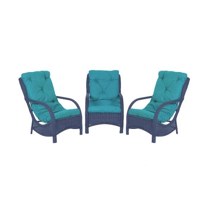 Jogo Poltronas Jardim Varanda Área Externa Descanso Alumínio Vime 3Un Confort Azul Dark Estonado Azul
