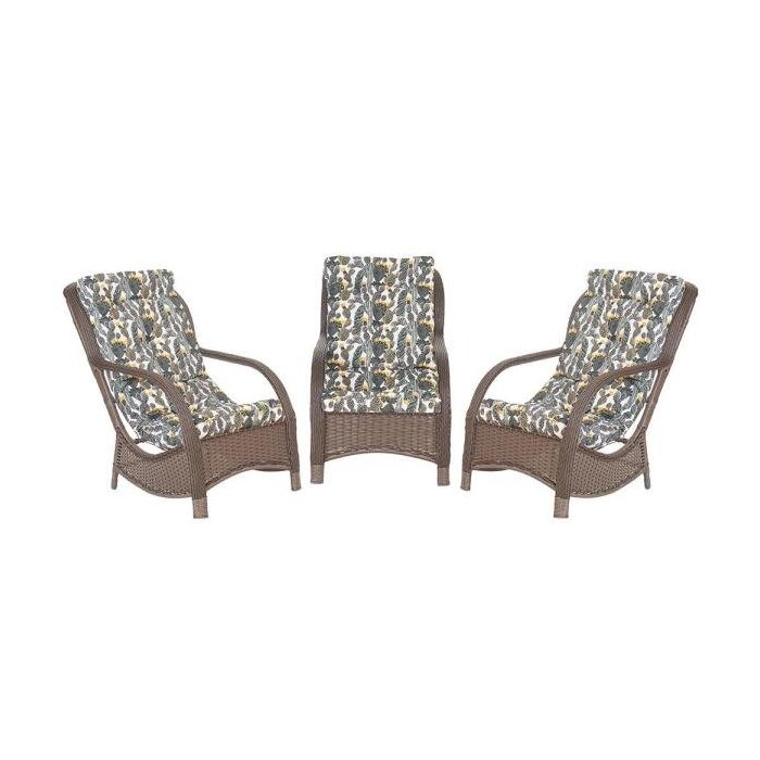 Jogo Poltronas Jardim Varanda Área Externa Descanso Alumínio Vime 3Un Confort Cacau A25 Cacau