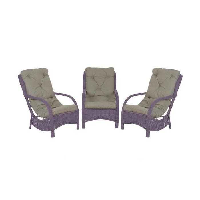 Jogo Poltronas Jardim Varanda Área Externa Descanso Alumínio Vime 3Un Confort Roxo Estonado A38
