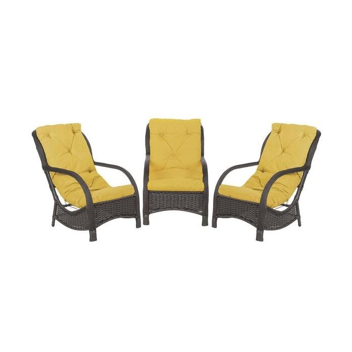 Decore a sua casa com os mais belos e confortáveis móveis, que dão requinte e elegância ao ambiente, são convidativos, lindos e práticos. Além de ecologicamente corretos, são produtos de qualidade, muito resistentes ao tempo. Produzida em estrutura de alumínio polido não enferruja, durabilidade cerca de 5 a 6 anos, Utilizando de maneira adequada tempo superior. material pode ser molhado e utilizado em áreas abertas. <br> <br> <br> <br> ITENS INCLUSOS<br> <br> <br> <br> - 3 Poltronas<br> <br> - 3 Almofadas Para Poltrona<br> <br> <br> <br> ESPECIFICAÇÃO DO PRODUTO<br> <br> <br> <br> MATERIAL DO ACABAMENTO: Fibra sintética com proteção UV.<br> <br> MATERIAL DA ESTRUTURA: Aluminium.<br> <br> SOLDA: Soldado MIG, de alta resistência.<br> <br> <br> <br> Ideal para ambientes externos, varandas, edículas, piscinas , área de lazer, salas de estar, sala de jogos, churrasqueiras, sala de filme, recepção, sala de espera entre outros.<br> <br> <br> <br> FABRICANTE: Click Móveis Artesanais<br> <br> GARANTIA: 12 meses Para Defeitos de Fabrica<br> <br> <br> <br> OBS:<br> <br> Fotos meramente ilustrativas. Tonalidades podem variar dependendo do monitor. Os objetos que ambientam as Fotos não acompanham o produto.<br> <br> Antes de comprar o seu produto verifique as medidas, o local onde pretende instalar e se necessário contratar o serviço de um profissional qualificado.