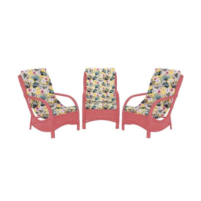 Decore a sua casa com os mais belos e confortáveis móveis, que dão requinte e elegância ao ambiente, são convidativos, lindos e práticos. Além de ecologicamente corretos, são produtos de qualidade, muito resistentes ao tempo. Produzida em estrutura de alumínio polido não enferruja, durabilidade cerca de 5 a 6 anos, Utilizando de maneira adequada tempo superior. material pode ser molhado e utilizado em áreas abertas. <br> <br> <br> <br> ITENS INCLUSOS<br> <br> <br> <br> - 3 Poltronas<br> <br> - 3 Almofadas Para Poltrona<br> <br> <br> <br> ESPECIFICAÇÃO DO PRODUTO<br> <br> <br> <br> MATERIAL DO ACABAMENTO: Fibra sintética com proteção UV.<br> <br> MATERIAL DA ESTRUTURA: Aluminium.<br> <br> SOLDA: Soldado MIG, de alta resistência.<br> <br> <br> <br> Ideal para ambientes externos, varandas, edículas, piscinas , área de lazer, salas de estar, sala de jogos, churrasqueiras, sala de filme, recepção, sala de espera entre outros.<br> <br> <br> <br> FABRICANTE: Click Móveis Artesanais<br> <br> GARANTIA: 12 meses Para Defeitos de Fabrica<br> <br> <br> <br> OBS:<br> <br> Fotos meramente ilustrativas. Tonalidades podem variar dependendo do monitor. Os objetos que ambientam as Fotos não acompanham o produto.<br> <br> Antes de comprar o seu produto verifique as medidas, o local onde pretende instalar e se necessário contratar o serviço de um profissional qualificado.