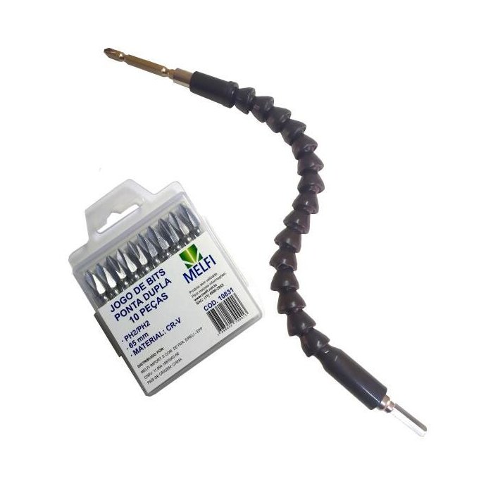 Jogo Pontas Bits E Cabo Extensor Para Parafusadeira 11 Peças