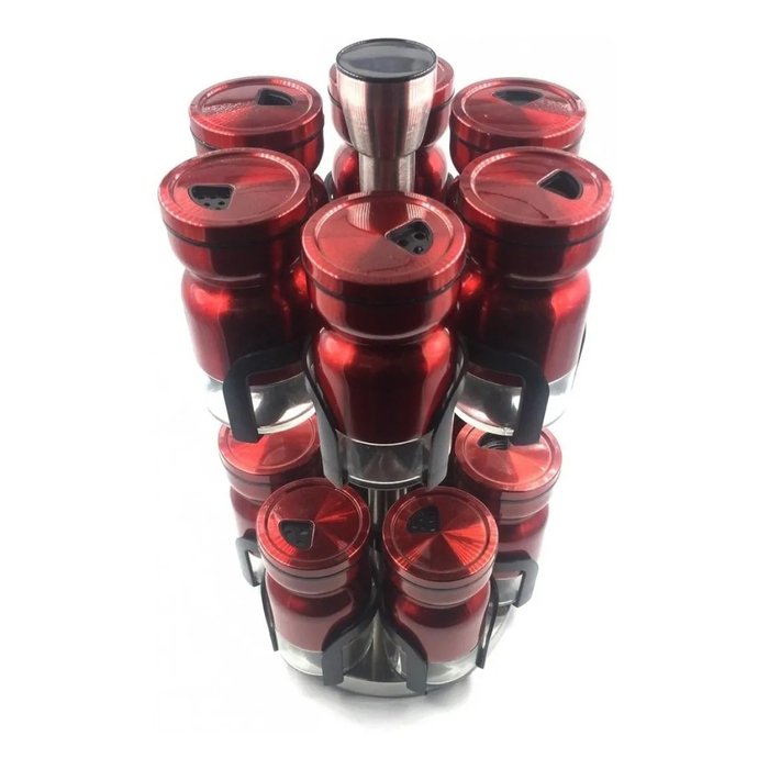 Jogo Porta Temperos Condimento Giratório Inox Vidro Vermelho - Vermelho Vermelho