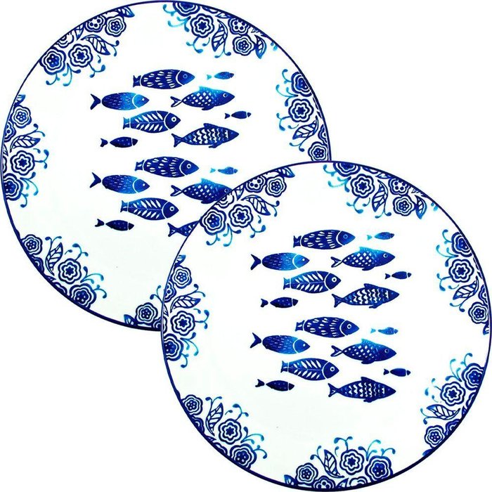 Jogo Prato Raso Jantar 10 Pessoas 10pçs Peixe Mar Praia 26cm Única