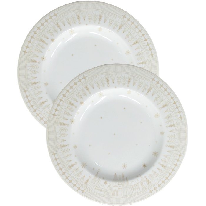 Jogo Prato Sobremesa Lanche 10pçs 10 Pessoas Natal Noel 21cm Branco