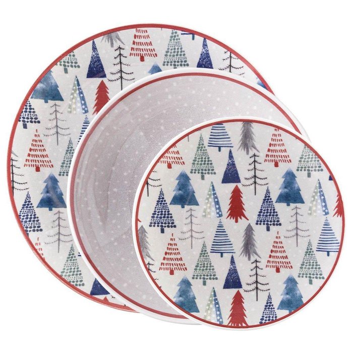 Jogo Pratos Rasos Fundos E Sobremesa 6 Peças Natal Pinheiro