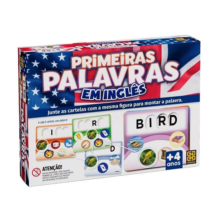 O jogo Primeiras Palavras em Inglês possui uma combinação estratégica de 28 palavras com 4 letras cada.