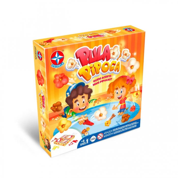O jogador deve acertar o maior número de pipocas nas bocas, cada uma com uma pontuação de acordo com o grau de dificuldade.Ao final do tempo cronometrado pela ampulheta, quem conseguir a maior pontuação, ganha. Especificações - * Contém - 40 pipocas sortidas, 4 lançadores, 1 forro para pontos, 1 catonado de personagens. 1 divisória e 1 ampulheta* Idade recomendada - 5 a 7 Anos, 8 a 10 Anos, Acima de 11 Anos* 2 a 4 jogadores Jogo Original Estrela