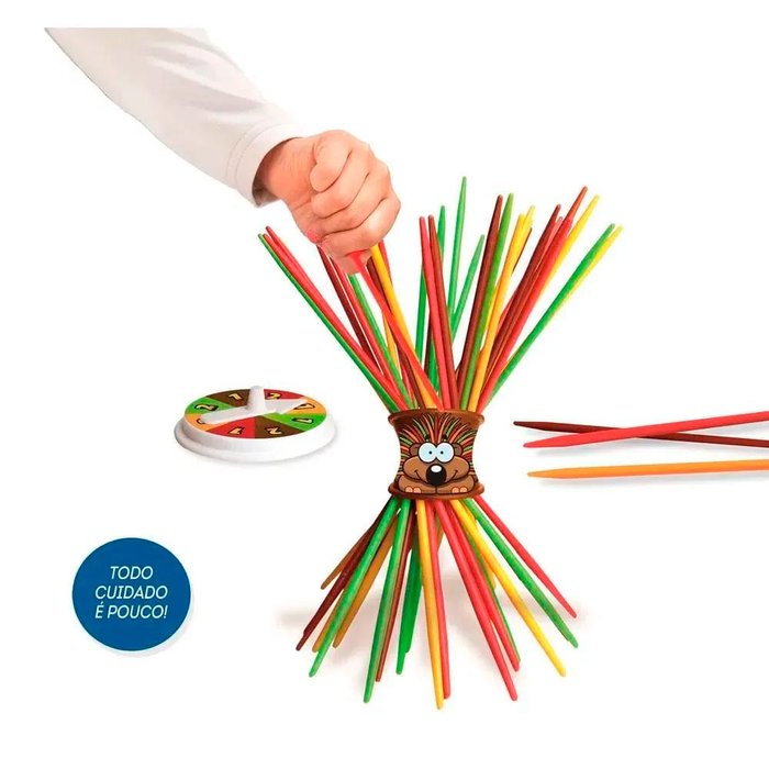 NOME DO PRODUTO: Jogo Infantil Unisex Elka Puxa Espinho REF: 2276 INFORMAÇÕES DO PRODUTO: O Jogo Puxa Espinho da Elka é a escolha ideal para momentos de diversão em família ou entre amigos. Com uma dinâmica que envolve habilidade e concentração, o objetivo é simples: puxar as varetas sem deixar o porco espinho cair! A roleta define o desafio, tornando cada jogada emocionante e desafiadora. Indicado para o uso em brincadeiras casuais, festas ou encontros em grupo, esse jogo não só diverte, como também ajuda a desenvolver a coordenação motora e o raciocínio estratégico dos pequenos. Uma ótima opção para crianças a partir de 5 anos, estimulando a interação social e promovendo a diversão saudável. DETALHE: Inclui 1 carretel, 32 varetas e 1 roleta;Material resistente para maior durabilidade;Roleta com diferentes opções de jogada, para mais emoção;Ideal para grupos de crianças e adultos. MATERIAL: Plástico de alta qualidade e durável. GARANTIA: Garantia de 3 meses contra defeitos de fabricação, conforme o fabricante.Imagens meramente ilustrativas.