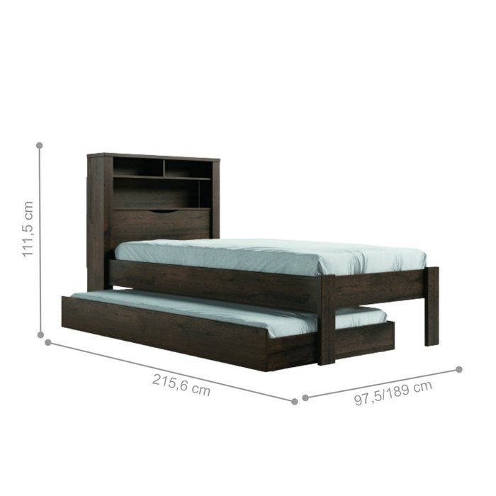 O destaque fica para o baú e as prateleiras. O baú oferece um amplo espaço para guardar cobertores, travesseiros e lençóis, já as prateleiras são perfeitas para pequenos objetos decorativos, assim deixando seu ambiente mais agradável e prático