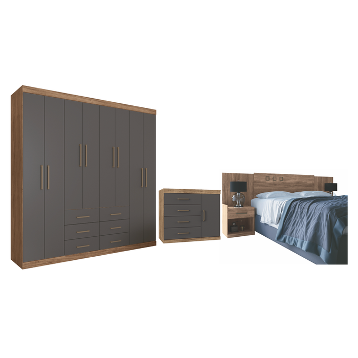 Jogo Quarto de Casal Completo Florida Atacama Grafite
