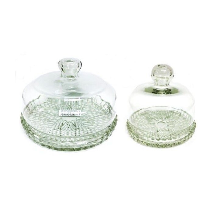 Jogo Queijeira Vidro Porta Queijo Base Decorada Veneza 2pç