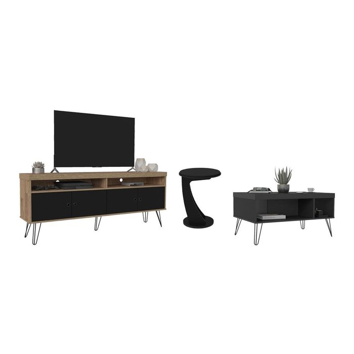 O Rack é perfeito para deixar sua sala com um ambiente Lindo e aconchegante. Feito em MDP, com 5 pés estilo industrial, também conta com 4 portas, e conta com 1 prateleira e 2 nichos. Tampo Tamburato Peso Suportado: 20 Kg A Mesa de Centro foi pensada e feita com o design perfeito para deixar sua sala de estar bonita e muito elegante. Com um estilo industrial e claen ideal para seu ambiente ficar mais aconchegante e sua cara. Sua estrutura é feita em Tamburato 50mm e MDP, seus pés são de metal contem a pintura texturizada. Mesa de Apoio com um design moderno e minimalista para complementar, decorar e embelezar sua sala de estar. Bonita e util, vai deixar o ambiente bem mais agradavel visualmente, confortavel e aconchegante sem contar com sua belezar que da um toque de elegancia e tras modernidade para o lugar. Sua estrutura feita em MDF 25mm incluindo os pés e a base, o tempo inclui MDF duplo 15mm. Dimensão do Rack: Altura: 63 cm Largura: 160 cm Profundidade: 41,5 cm Informação do Rack: Cor: Rustico/Preto Pés: Sim (5) em Industrial Prateleira: Sim (1) Portas: Sim (4) Nichos: Sim (2) Tampo: Sim, em Tamburato Dimensões da Mesa de Centro: Altura: 46,5 cm Largura: 91 cm Comprimento: 59 cm Informação do Produto: Cor: Preto Material: MDP Gavetas: Não possui Nichos: Sim, (2) Pés: Sim, (4 Metal) Dimensões da Mesa de Apoio: Altura: 64,5 cm Largura: 50 cm Comprimento: 50 cm Informação do Produto: Cor: Preto Material: MDF Gavetas: Não possui Portas: Não possui Prateleiras: Não possui Pés: Sim, (2) Itens Inclusos: 1 Rack 1 Mesa de Centro 1 Mesa de Apoio Manual de Montagem Kit completo para montagem e manual de instruções Garantia: 3 meses contra defeito de fabricação Informações Adicionais: - Fotos meramente ilustrativas do produto no ambiente. - Os objetos que ambientam as fotos não acompanham o produto; - Verificar descrição e tamanho do produto antes da compra. - Avaliar a mercadoria no ato do recebimento e recuse em caso de divergência ou avarias. - Mantenha as informações de contato e endereço de entrega atualizados para entrarmos em contato caso necessário. - Limpar com flanela ou pano macio seco, não utilizar produtos abrasivos, desengordurantes, álcool ou solvente. Não expor o produto diretamente à luz solar e à umidade. * Sugerimos a contratação de um montador profissional para a montagem do produto. Não nos responsabilizamos por avarias causadas no ato da montagem. * Não nos responsabilizamos pela montagem e desmontagem do produto no ato da entrega e devolução, assim como os custos gerados nestas situações. * A transportadora entregará o produto no andar térreo do endereço de entrega. * Não nos responsabilizamos por subir escadas, corredores e elevadores ou transporte por guincho em apartamentos.