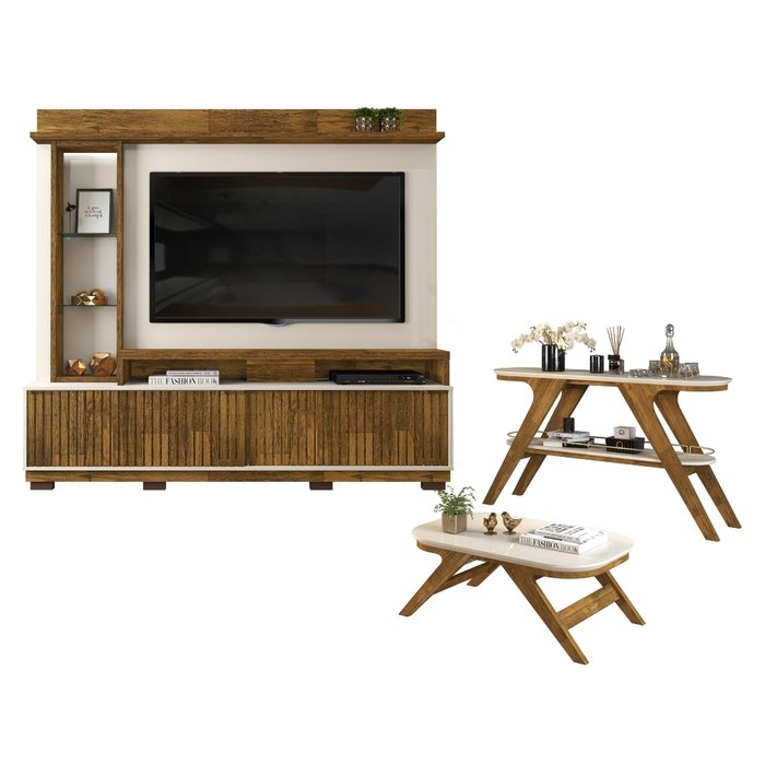 Jogo Sala de Estar Pandora Amadeirado Creme