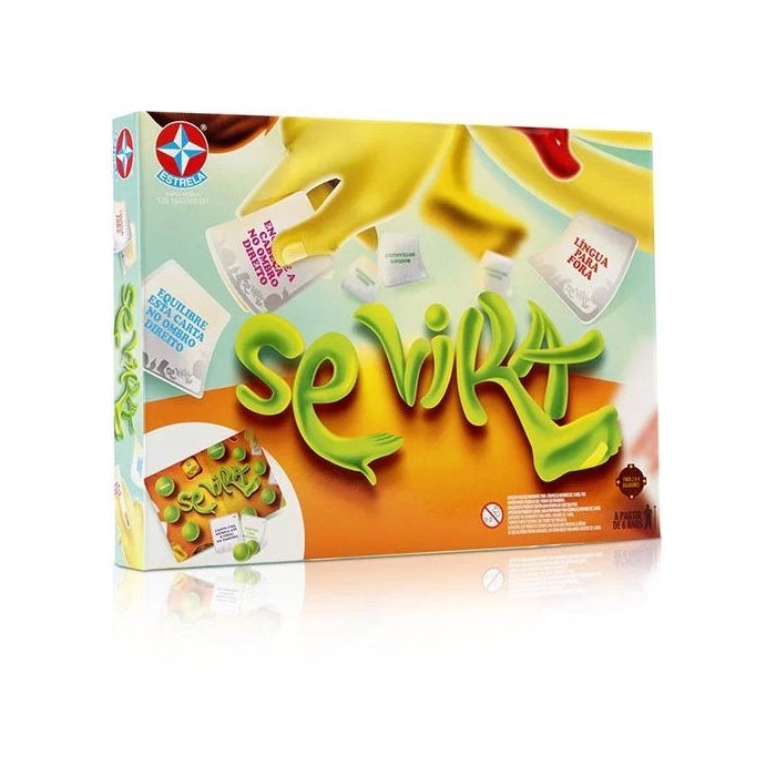 Jogo Se Vira da Estrela! Equilibre a bolinha embaixo do queixo, ponha a carta sobre a sua cabeça! As atividades são acumulativas. Pois para conseguir realizar todas as ações para chegar ao final do tabuleiro, você terá que mostrar que sabe se virar! Cada carta possui uma determinada pontuação, que corresponde ao número de casas que poderão ser andadas. Vence quem chegar à última casa primeiro!