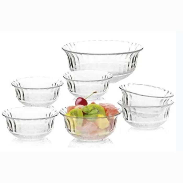 O Jogo de Saladeira de Vidro vem com 7 Peças. Este bonito Jogo de Saladeira contém 07 peças lindas para compor a mesa e deixar a sua cozinha mais bonita. É fabricada em vidro transparente no formato redondo de alta qualidade, ideal para saladas e sobremesas. Possui 01 saladeira grande e 06 saladeiras pequenas. Tenha um design clássico em sua casa para servir suas visitas com requinte e beleza.