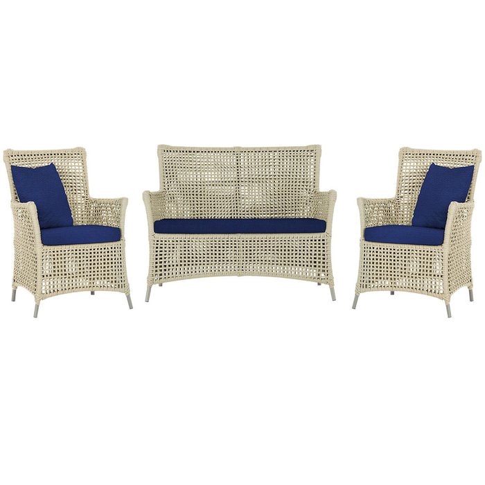 Jogo Sofá e 2 Poltronas de Área Igapó Alumínio Pintura Fendi Corda Náutica Estofado 10 Trama