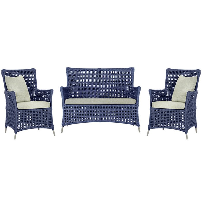 Jogo Sofá e 2 Poltronas de Área Igapó Alumínio Pintura Fendi Corda Náutica Estofado 3 Trama