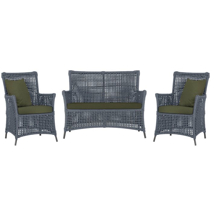 Jogo Sofá e 2 Poltronas de Área Igapó Alumínio Pintura Preta Corda Náutica Estofado 13 Trama Prata