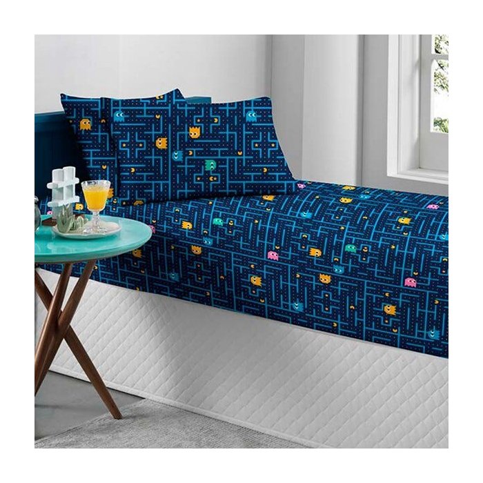 Jogo Solteiro Infantil 2 Peças Portal Play Estampado Pac Pac Marinho